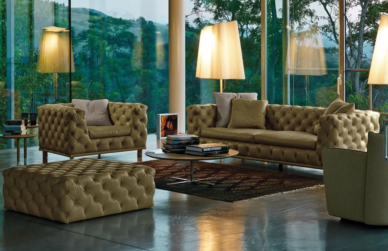 The Aston ottoman is a gorgeous addition to a contemporary living room and is not only eye-catching but also functional. Whether used as a side table, extra seating, or a place to kick up your feet, the ottoman is the ideal fit for a modern setting. With handmade Capitonne tufting and incredible attention to detail, it is highly adaptable with any decor and furniture. Pair it with sofas and chairs from the Aston collection or mix and match for a variety of stylish looks.