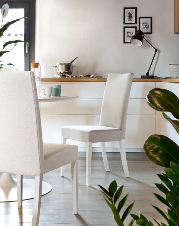 COPENHAGEN classic solid wood chair with padded seat upholstered in technical coated fabric. Characterized by a streamlined design, the chair features four legs in solid beech. Upholstered seat for maximum comfort. Suitable for furnishing the dining room and public spaces with class.