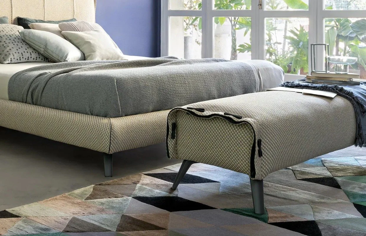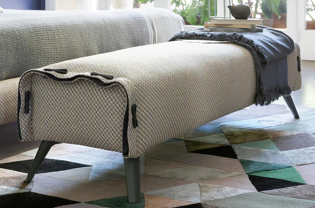 The Cuff bench by Bonaldo is a practical and stylish addition to a modern home. With intricate bow-like details around the edges offers an elegant look to make this an ideal accent piece. It looks perfect at the foot of a bed or any area in need of extra seating. Thanks to the soft cushioning and luxurious upholstery, it provides comfort for hours. The angled legs are supportive and add a playful amount of geometry.