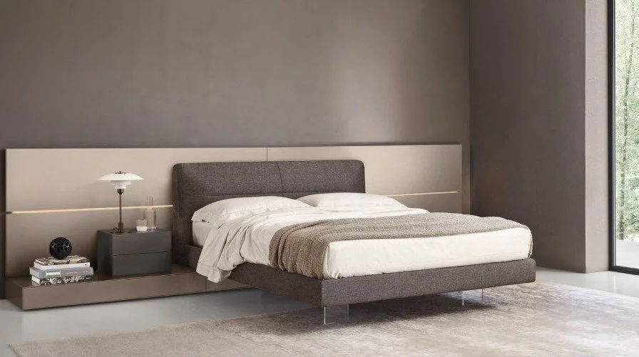 To highlight the freedom with which the Diletto Bed collection can create compositions, platforms and boiserie come with the same wood or lacquered finish, and materials and finishes can alternate with padded panels.