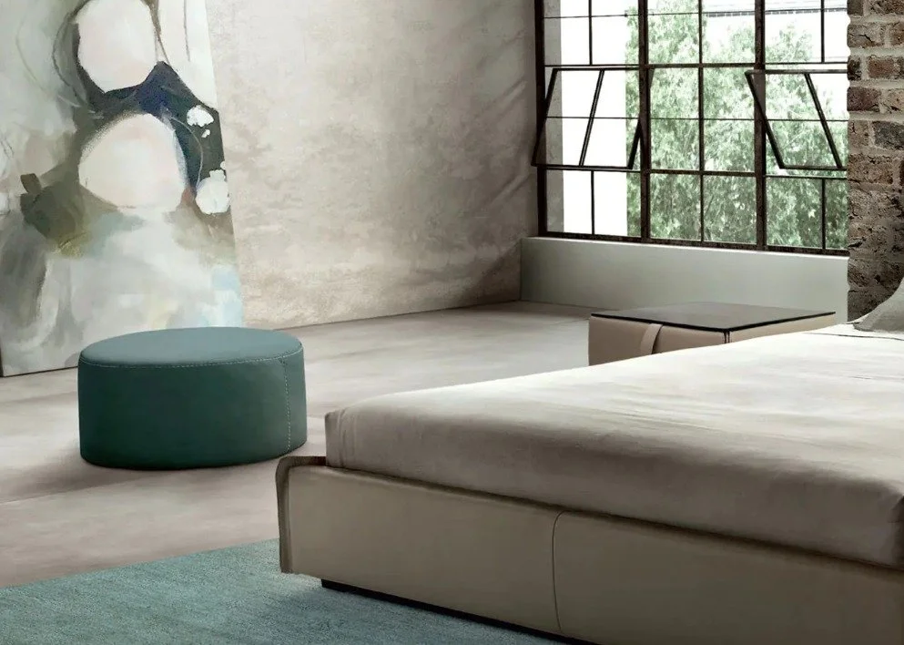 The Drop ottoman is a highly versatile piece of furniture that looks lovely in a modern setting. Aptly named, the small round shape resembles a drop of water for a gorgeous touch. It is the perfect place to kick up your feet and relax, and can also be used as a small table or extra seating. With incredibly detailed stitching, the contrasting upholstery on the sides and top pop against one another.