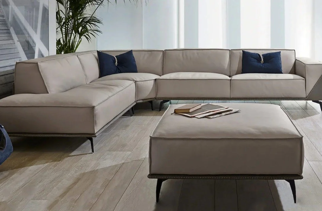 The Edwin ottoman is a complementing element to the entire Edwin collection, offering a place to rest one's feet, a spot to place belongings, and extra seating. With intricate stitching along the edges, it frames the piece for an eye-catching touch. Manufactured in Italy by Gamma Arredamenti, the ottoman is available in two versions that include a square and rectangular size to accommodate various types of spaces.