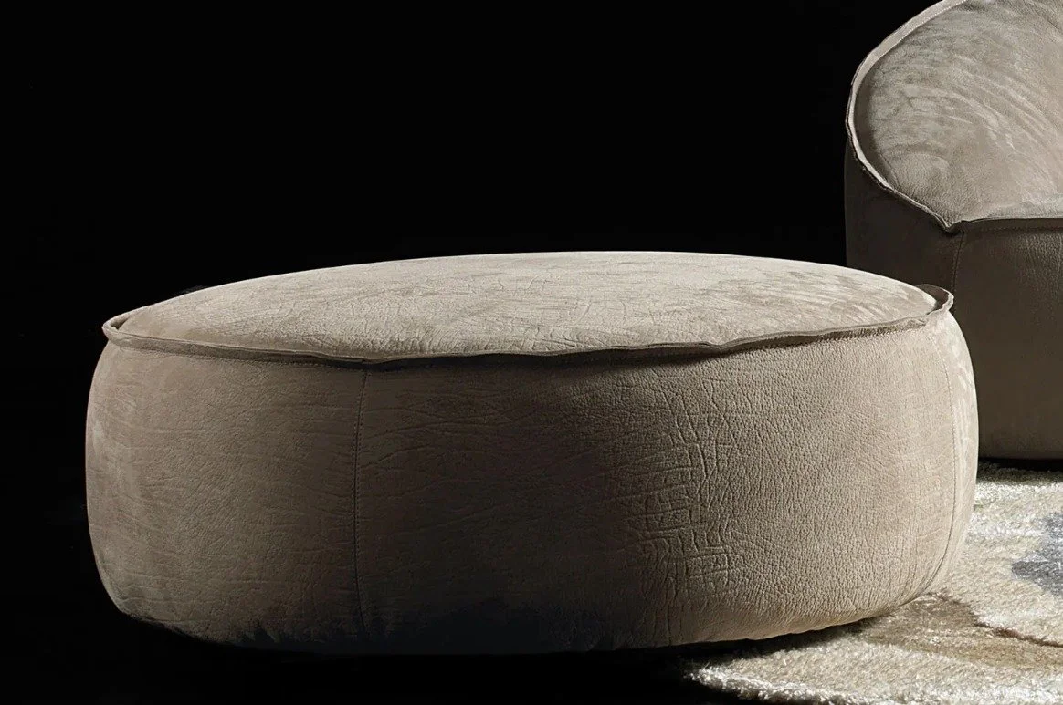 The Jazz round ottoman is the perfect addition to a contemporary home and features inviting dimensions and functional disposition. Whether used as a place to elevate your feet, an extra seat, or a small side table, it stands out in style and looks great in any room of the house. Manufactured in Italy by Gamma Arredamenti, the round ottoman has unique stitching details and a sturdy wooden frame to ensure sustainability for years to come.