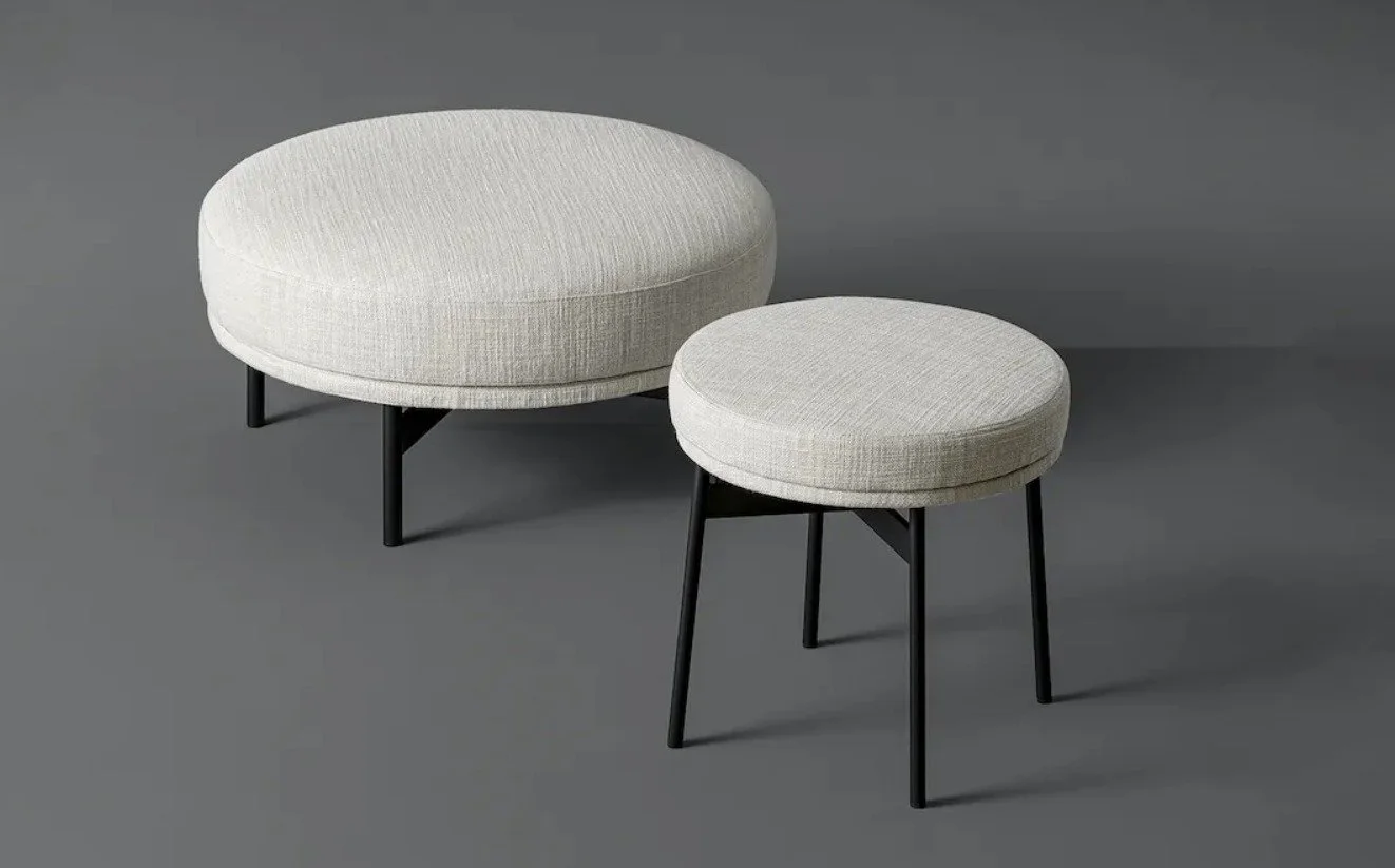The Neuilly pouf is available in two different sizes and is characterized by the immediately recognizable slender tubular metal frame which can be found in the other pieces of furniture of the Neuilly collection, together with the generous padding of the support. Visual elegance and purity of form are the stylistic features of this versatile and light-figured piece of furniture.