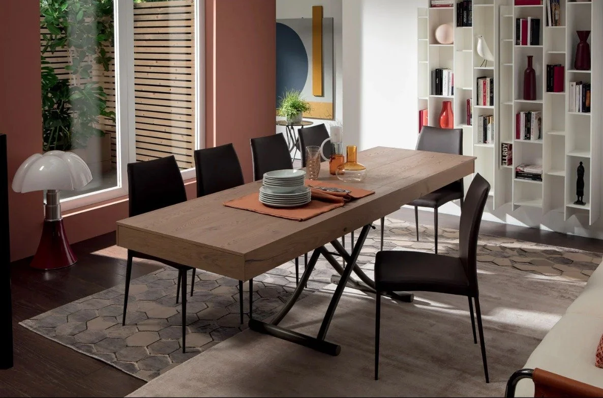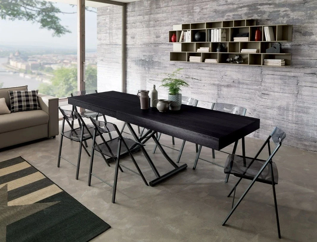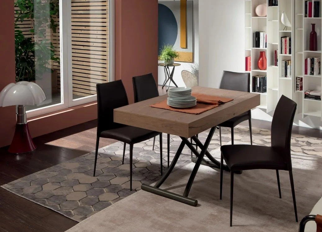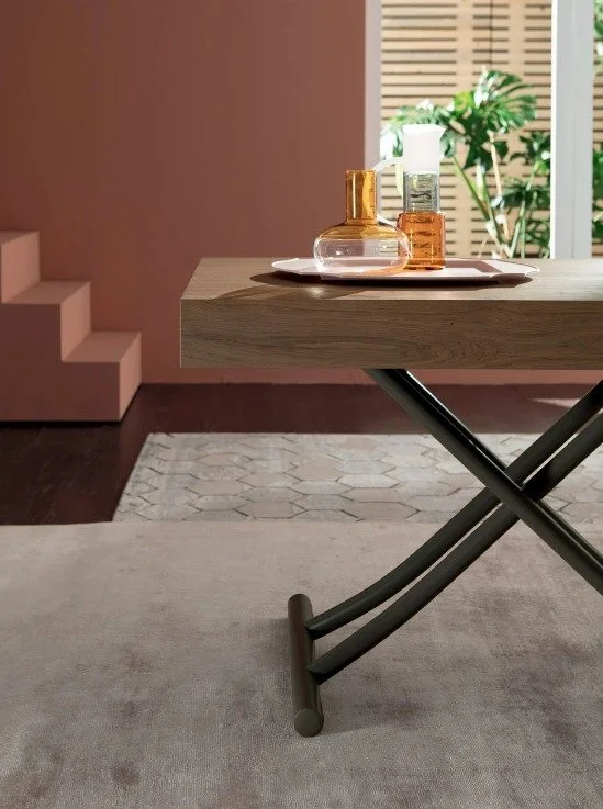 < Transformable Furniture newood Metal frame transformable table, gas adjustable height from cm 23 to cm 80, synchronised telescopic extension mechanism. Slide 1 Slide 1 (current slide) Slide 2 Slide 2 (current slide) Slide 3 Slide 3 (current slide) Slide 4 Slide 4 (current slide) Slide 5 Slide 5 (current slide) Finish Fabric/LeatherStructure color Dimensions Download Specification