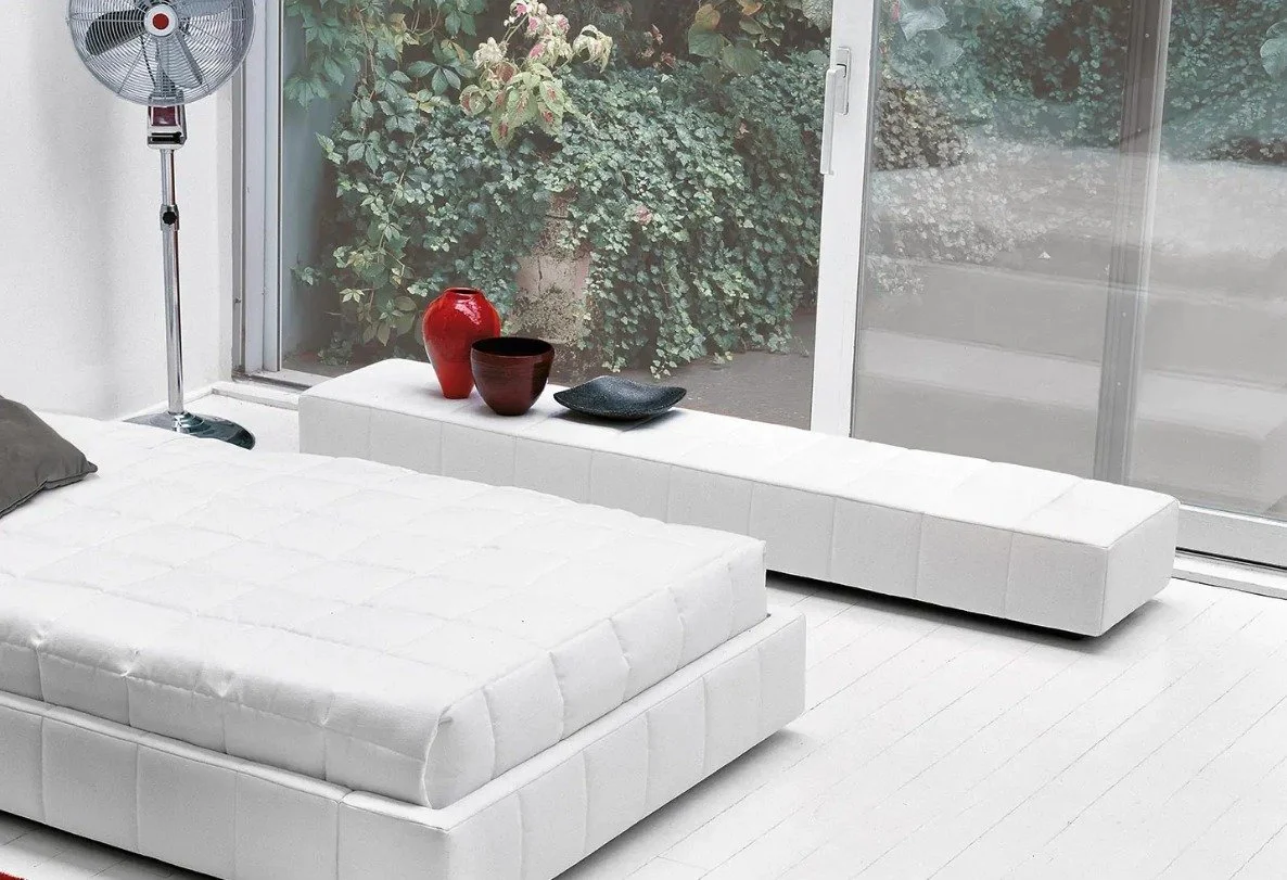 Geometrically inspired and practical, the Squaring bench by Bonaldo is a lovely accent piece for a modern bedroom. It has a versatile nature that makes it an ideal seating solution, table, or ottoman. With intricate stitching that creates a checkered pattern, it stands out and adds a striking look to the room. Thanks to the soft upholstery and cushioned lining, it offers comfort for hours.